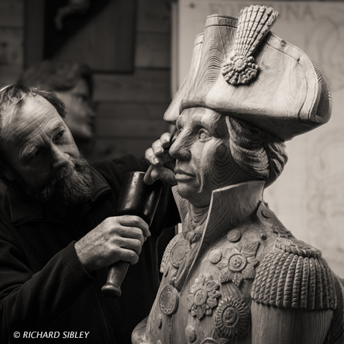 Carving the bust of Lord Nelson for a private collector