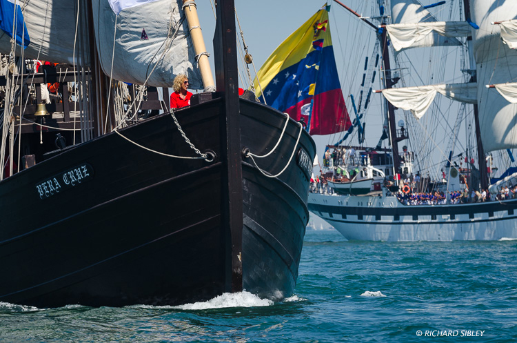 Caravele Vera Cruise, Portugal. Background vessel Venezuelan barque, Simon Bolivar