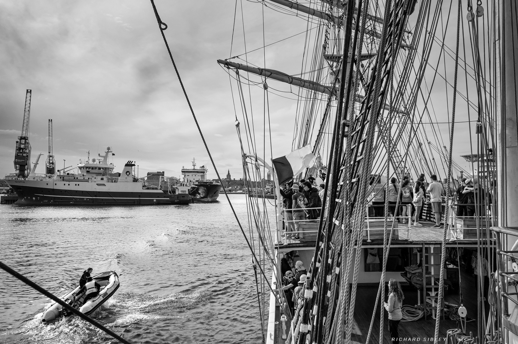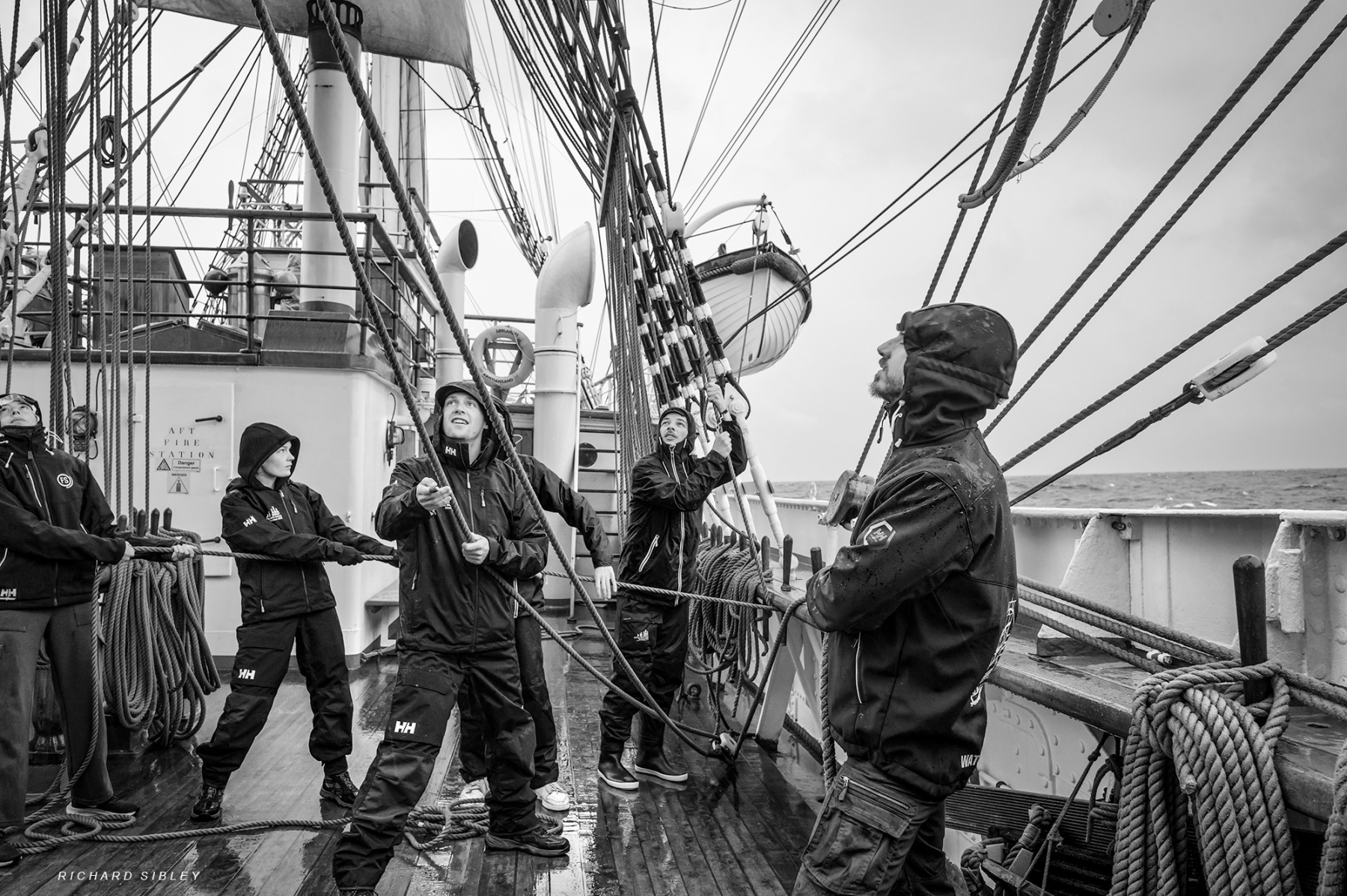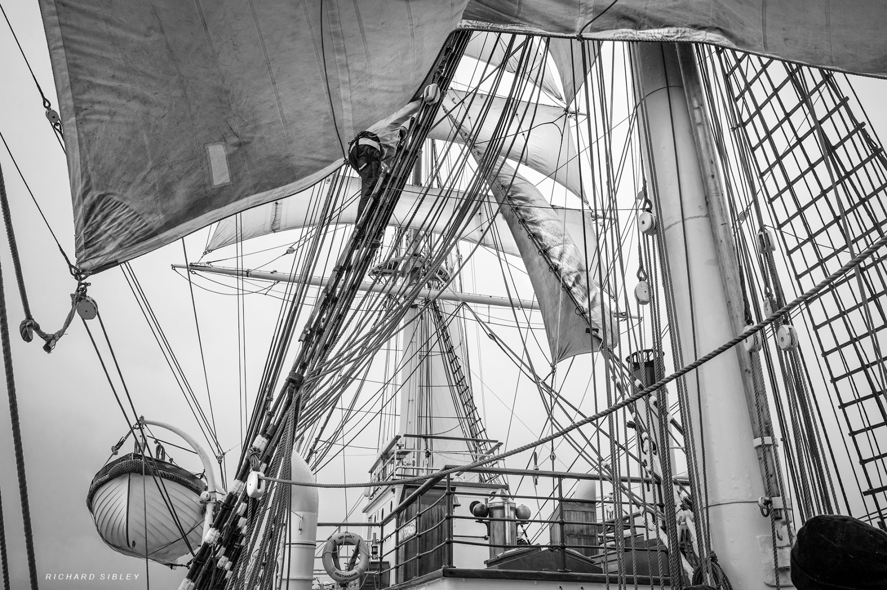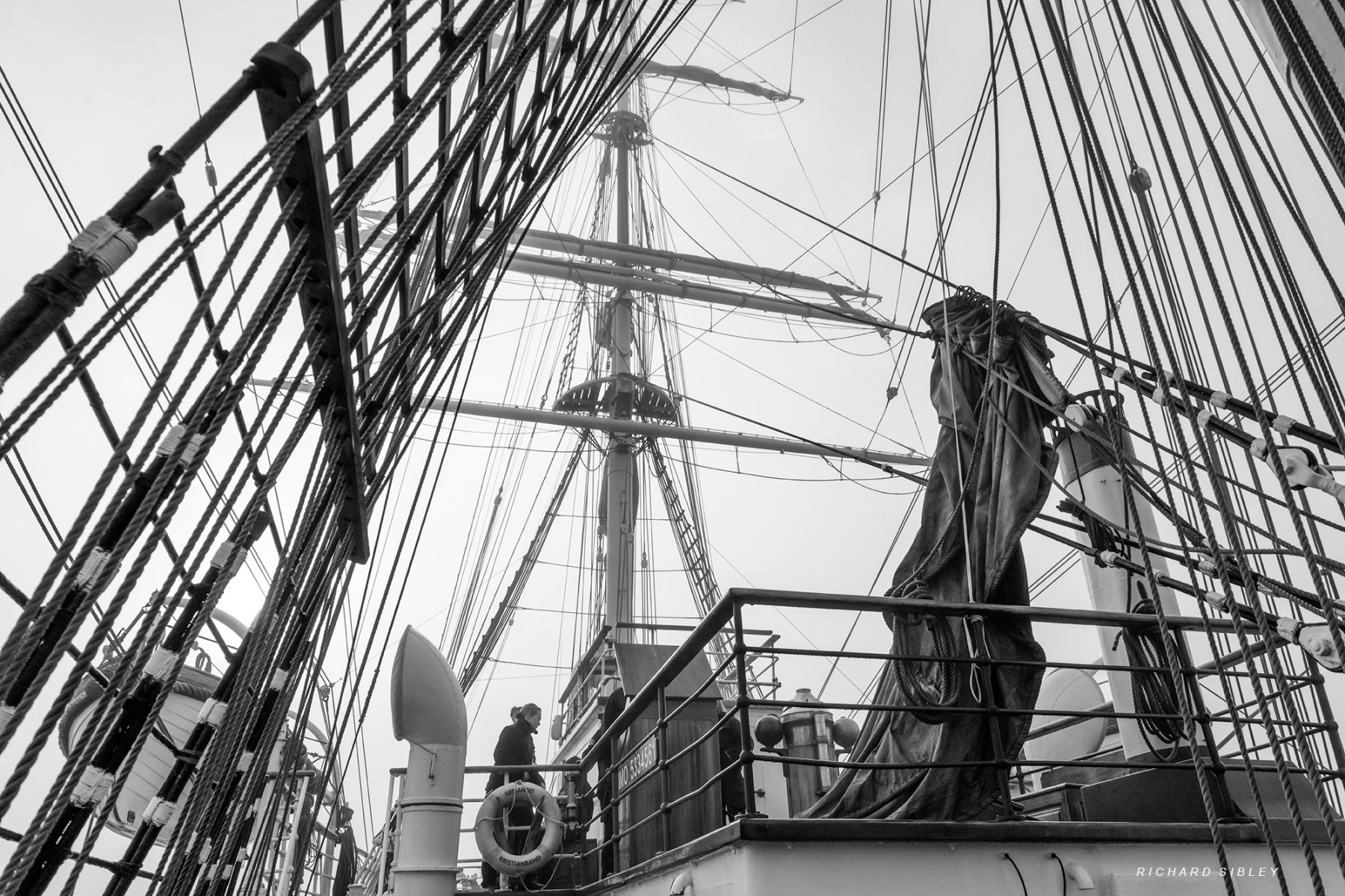 Step onboard Sørlandet the oldest (1927) full rigged sailing ship still in commission as she sailed from Dunkerque to Aberdeen in 2025. Experience the atmosphere as the professional crew teach the trainees, of all ages, the rigours of a sailing ship at sea. Surrounded by fog, climb the mast from the safety of your portable device or better still sign up for next years tall ships races